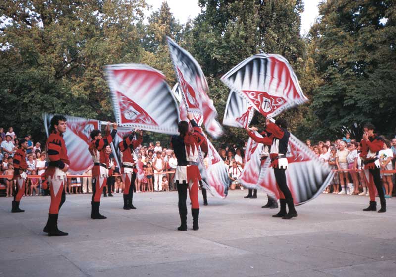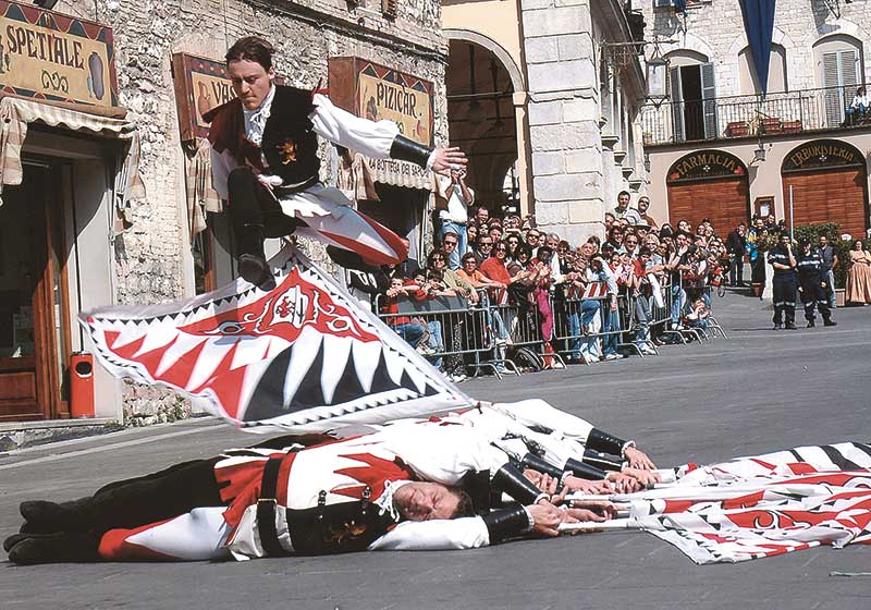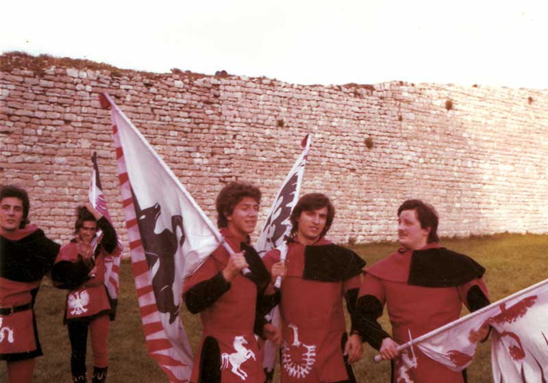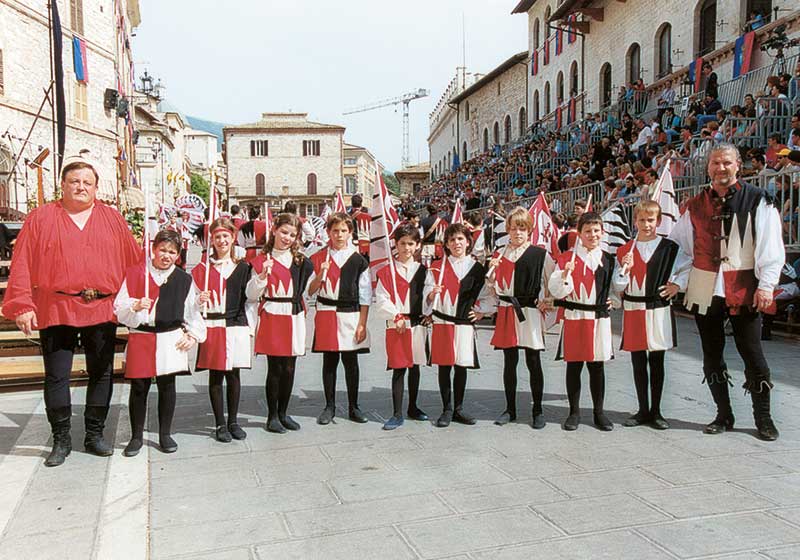 Gli Sbandieratori di Assisi nascono nell'ottobre del 1975 per l'iniziativa di alcuni giovani sensibilmente attaccati alle tradizioni ed alle manifestazioni popolari umbre,